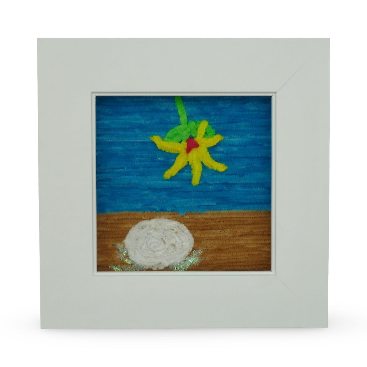 The story - another sweet surrealist gem. Symbolizing life and creation one looks in awe the other. Both in their perfect beauty, both equally share the space. The egg in a nest of tinsel anchors the piece in craft.