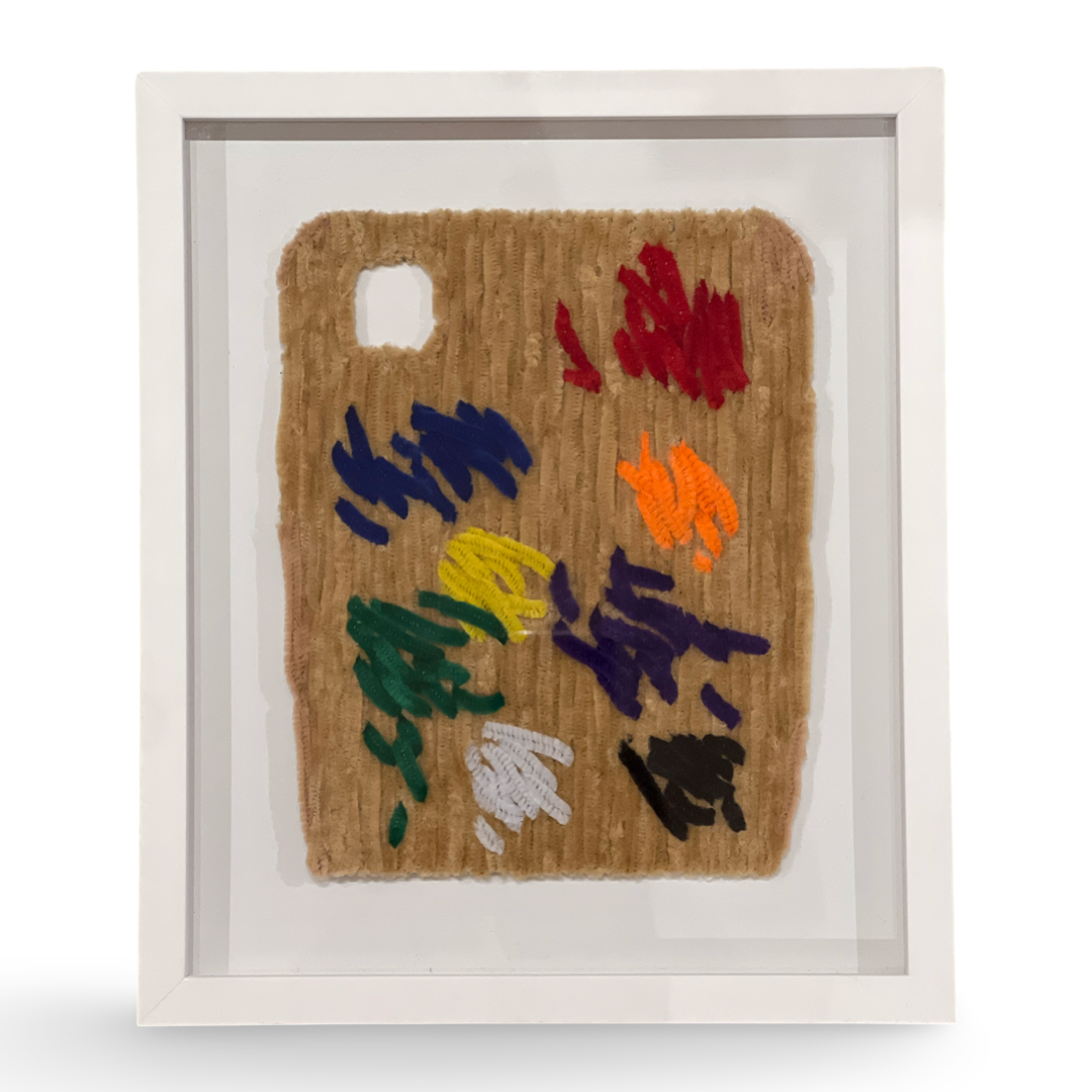 The story – Alongside woven imagery, I also create sculptural work. This piece captures how I use pipe cleaners to “paint,” working most often within a restrained, primary palette.